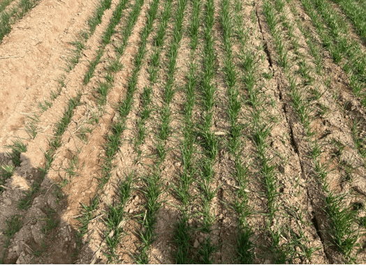 小苗弱苗(无蘖或刚出1蘖):针对地表裸露、表土塇虚,但干土层仅2-3厘米、下部墒情仍好的地块,切忌当下大水漫灌,以免造成表土板结裂缝,妨碍根苗生长。为推迟浇水,现阶段可使用胶轮镇压机镇压一遍;在适墒期也可结合划锄,破除板结、增温保墒。